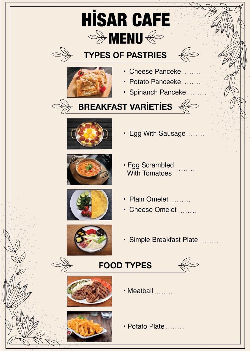 Guests rave about the warm atmosphere, friendly service, and the scrumptious food—like the scrambled eggs made with love that remind you of home. HISAR Cafe is more than just a place to eat; it is an experience steeped in Turkish hospitality and culinary tradition. Whether you're after a hearty breakfast or a light lunch, you'll find that every dish is crafted with care. Highly recommended for its affordability and incredible taste!